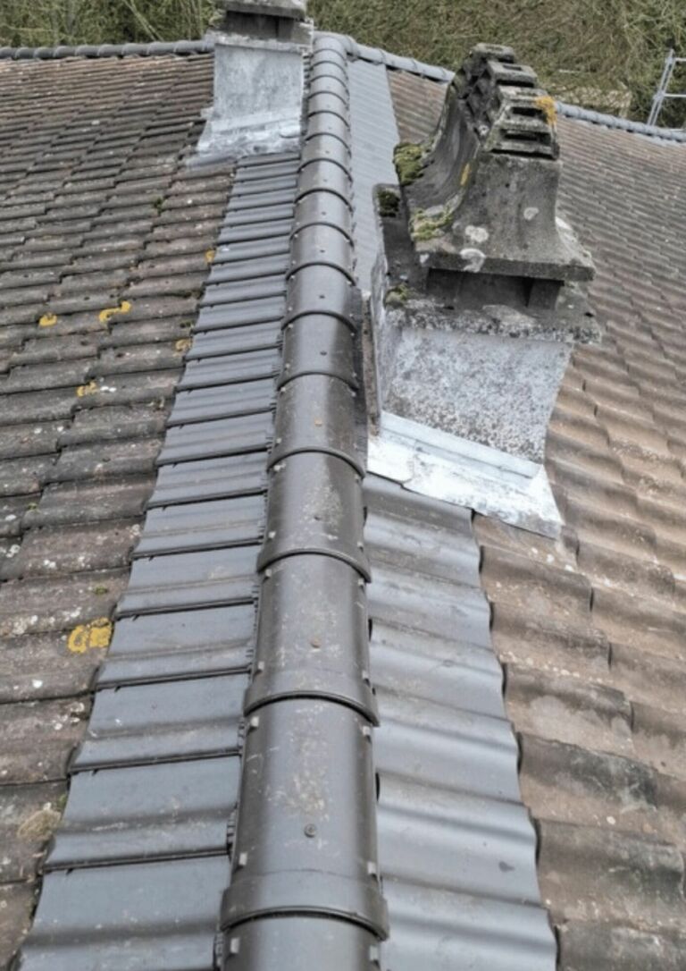 Rénovation de toiture à Étiolles : intervention soignée sur la résidence des Bois du Cerf avec remplacement des éléments de couverture et nettoyage complet.